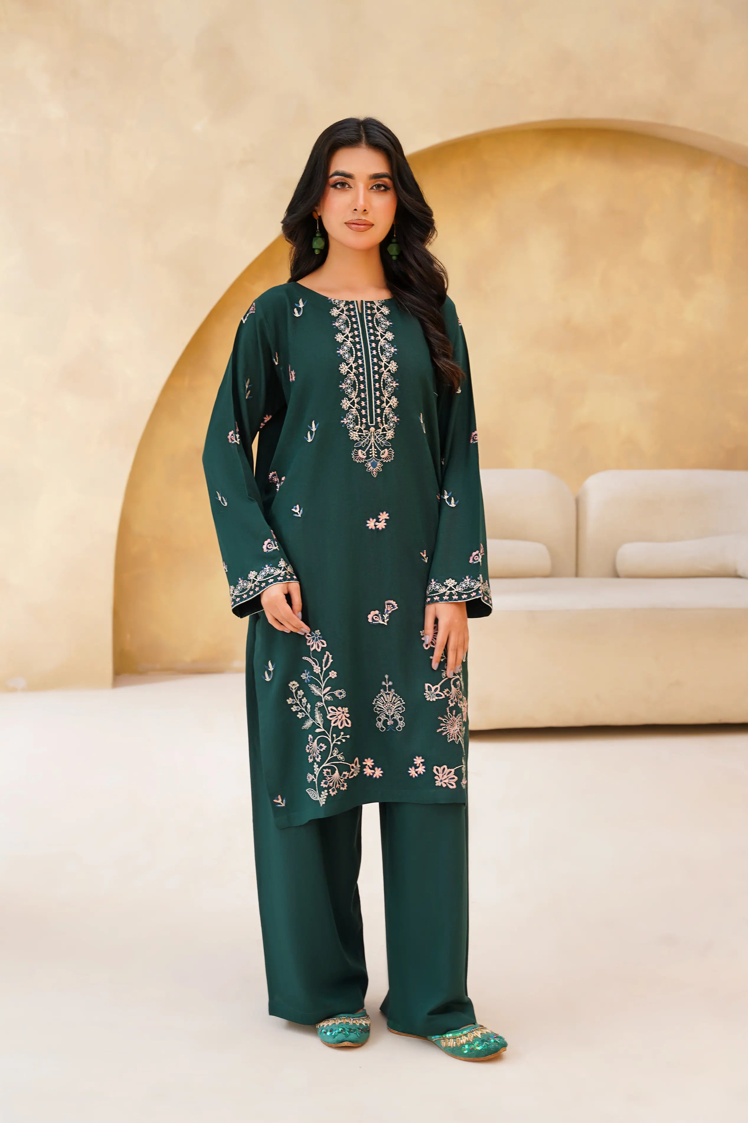 Step into the forest with our stunning 3-piece ensemble in deep forest tones. This stitched collection brings together perfectly coordinated pieces that work beautifully on their own or layered together. Rich, moody hues create an effortlessly chic look that transitions seamlessly from day to night. Crafted with care and ready to wear, this set is your shortcut to put-together style without the fuss.