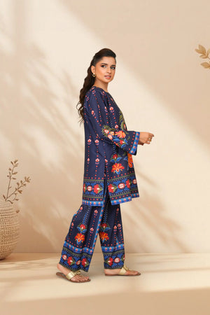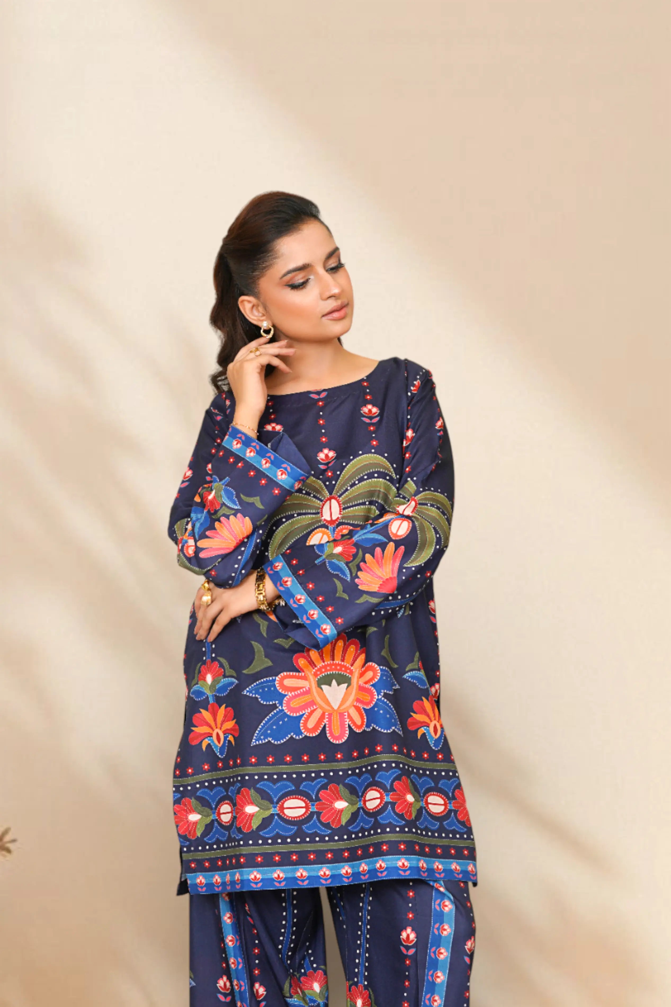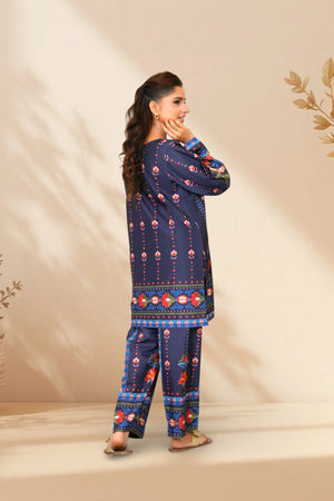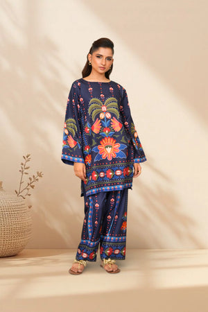 Ready to wear Printed dress with Boat Neckline, featuring straight Trouser.