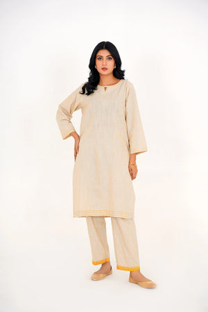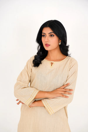 Our Khaddar Casual Dress is meticulously crafted from premium Khaddar fabric, chosen for its warmth and luxurious texture. This fabric ensures you stay snug and comfortable throughout the winter season.