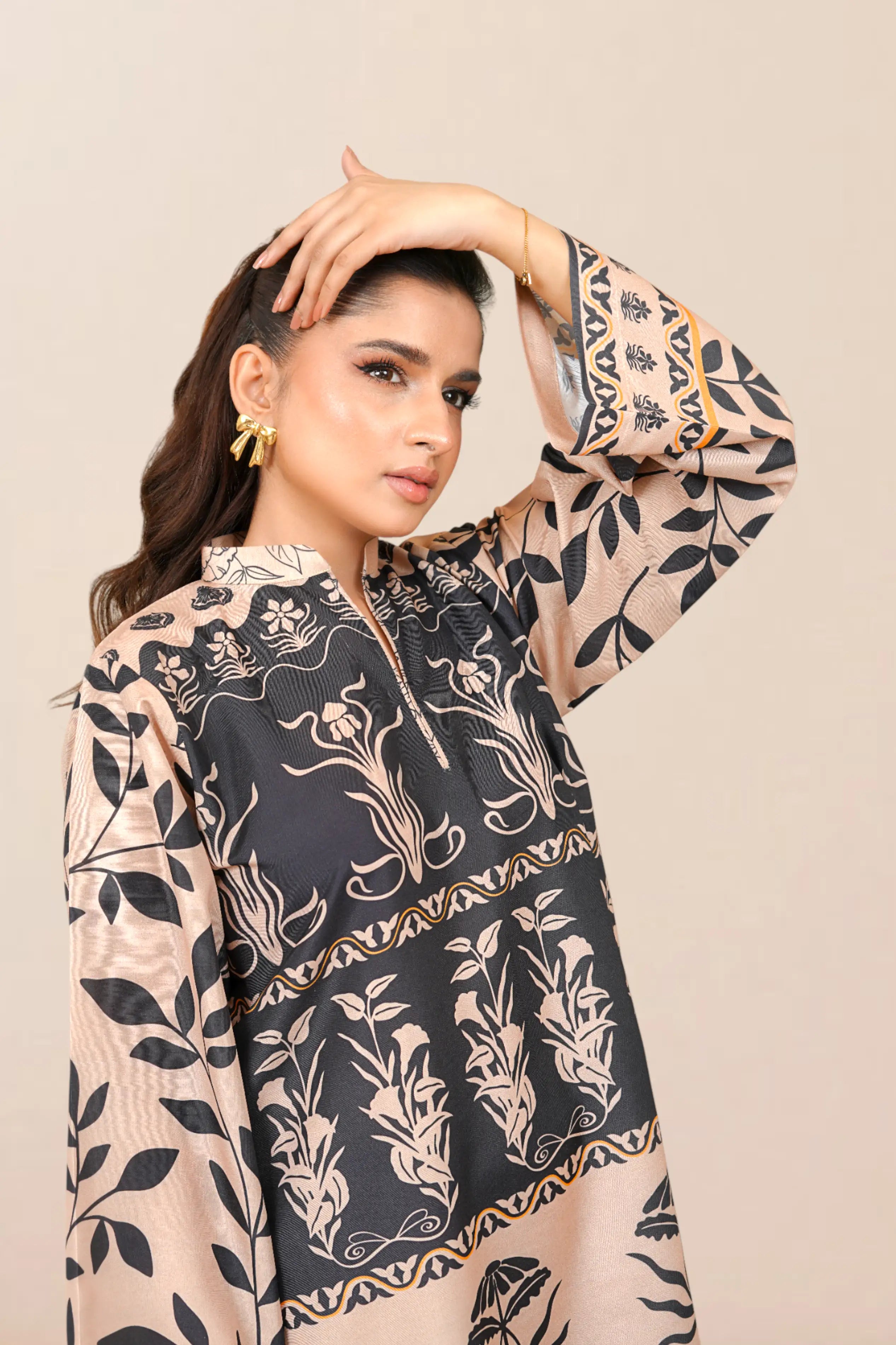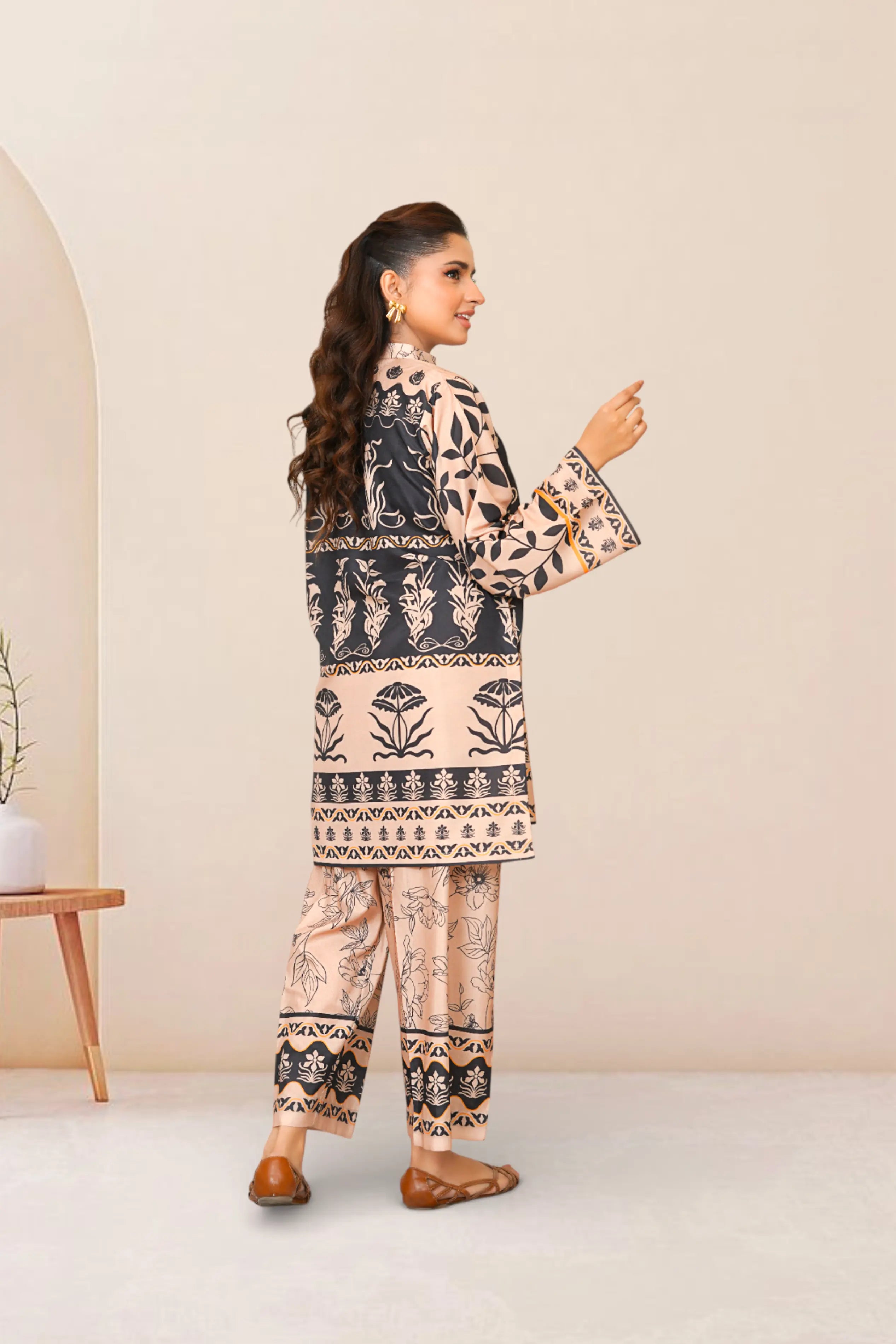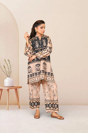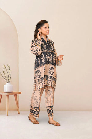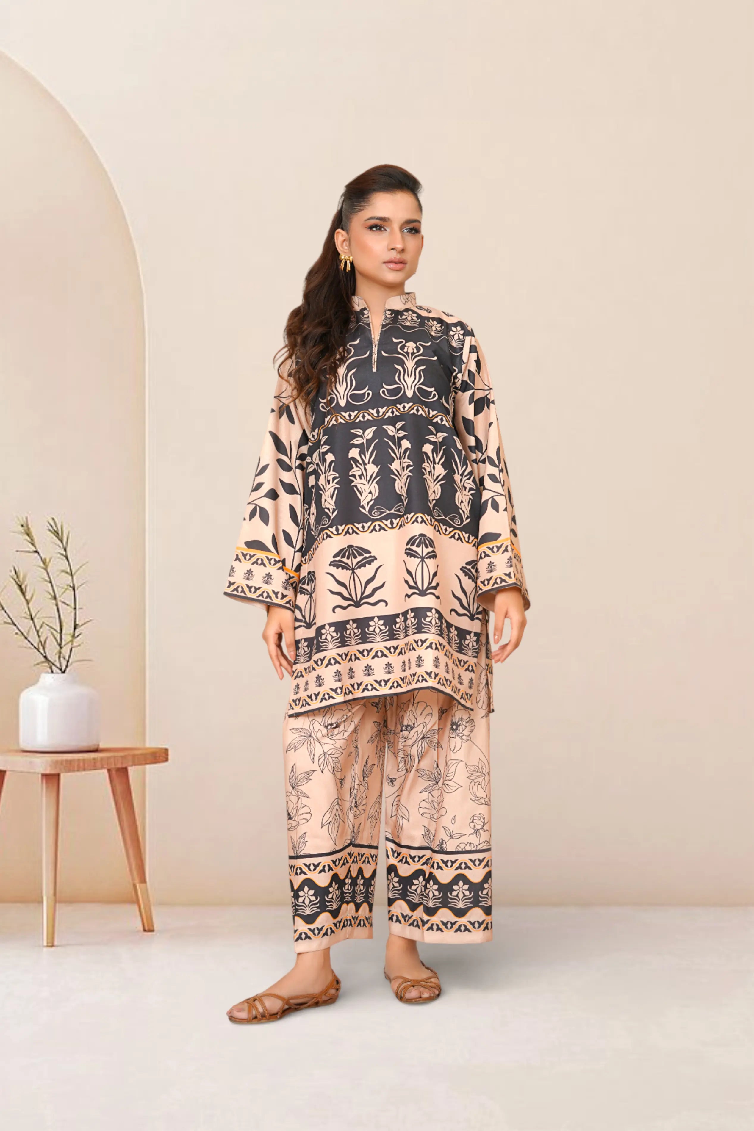 Ready to wear Printed dress with Ban collar, featuring straight Trouser.